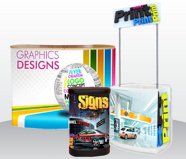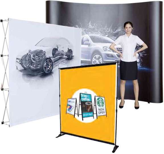 Exhibition Signage for trade shows, exhibitions, conferences and meetings comes in many different options like portable pop-up stands, pop-up banners, pull-up banners, brochures and magazine holders and many more...