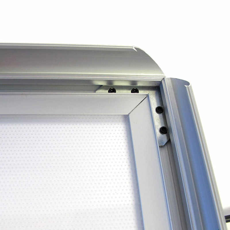 Anodized aluminum frames and LED back lit, ideal for bulletin, notice and poster, designed to allow easy poster change. It also comes with rounded corners.