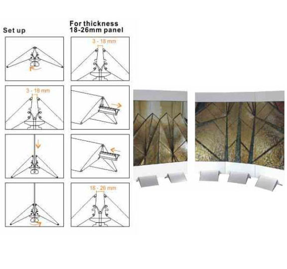 Easy set up, holds up to 1" thick substrates, great for floor or table top displays.