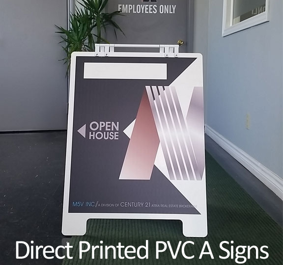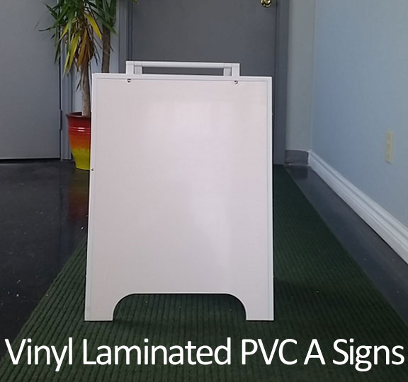Durable aluminum hinge handles with more sturdier aluminum fastening tabs compared with traditional plastic tabs. White coated metal edge caps wrapped more long-lasting than PVC edge caps. Advanced and easy assemble from rivets to screws. Improved and stronger metal chain keeps sign from collapsing. Also available direct printed PVC A-boards