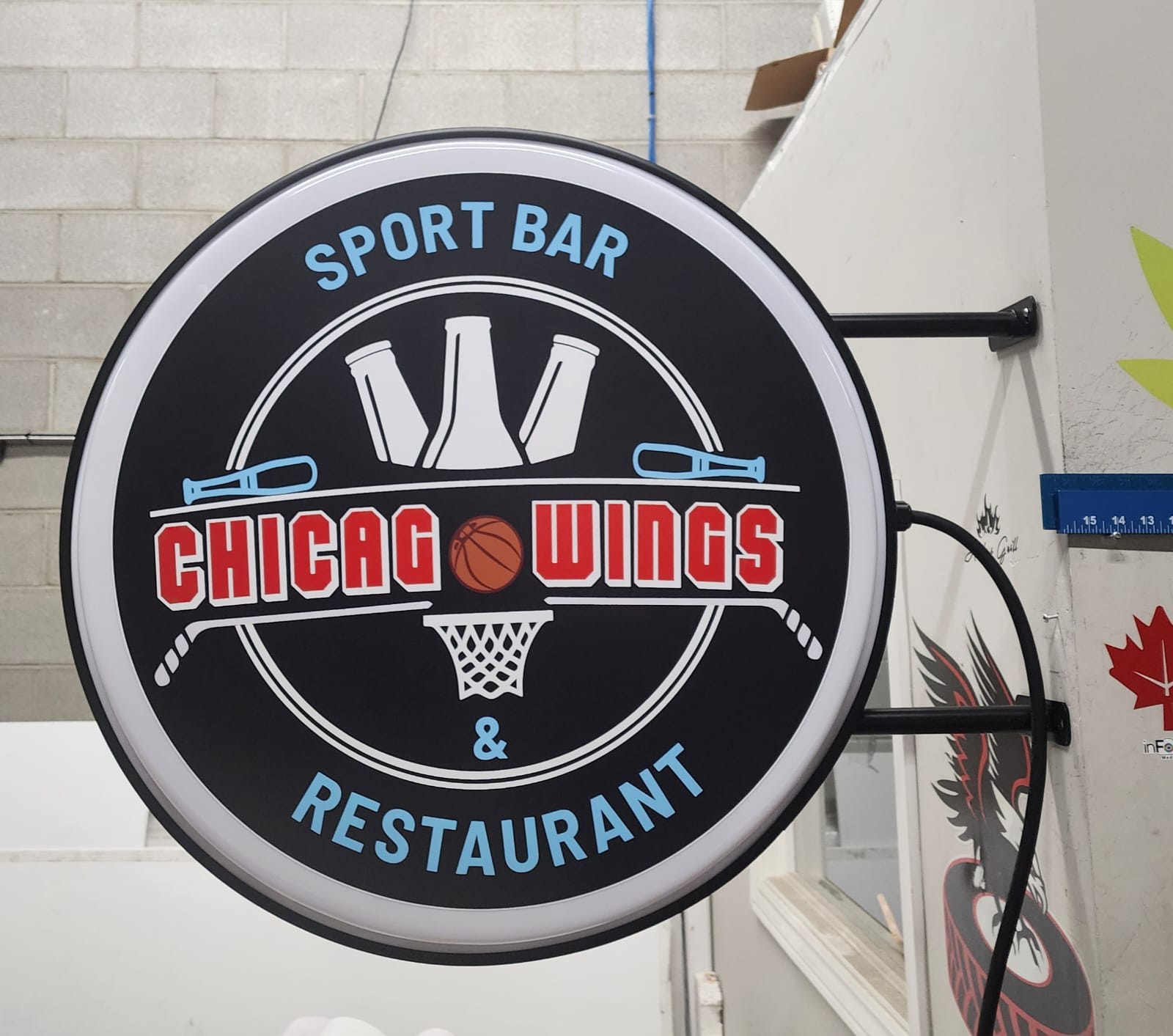 Round Illuminated Blade Sign Attract attention, round signs, just add graphics. Restaurants, bars, coffee shops, donuts, bagels, pizza, sporting goods, optical. Circular design 24" and 30" diameter