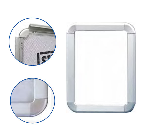 Anodized aluminum frames, ideal for bulletin, notice and poster, designed to allow easy poster change. It also comes with rounded corners.