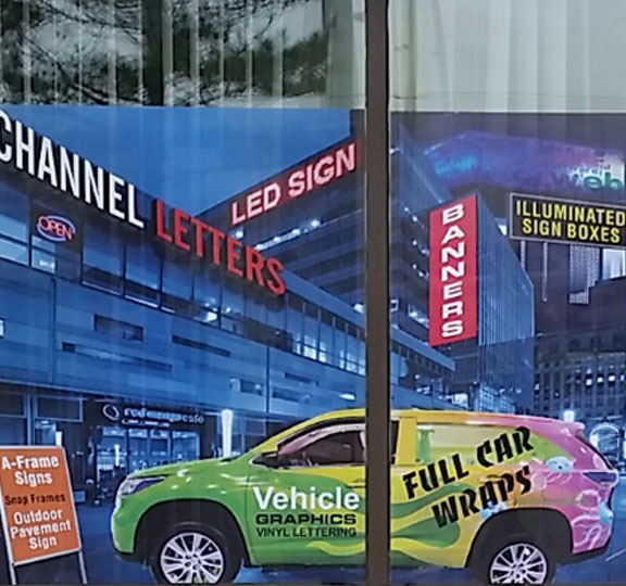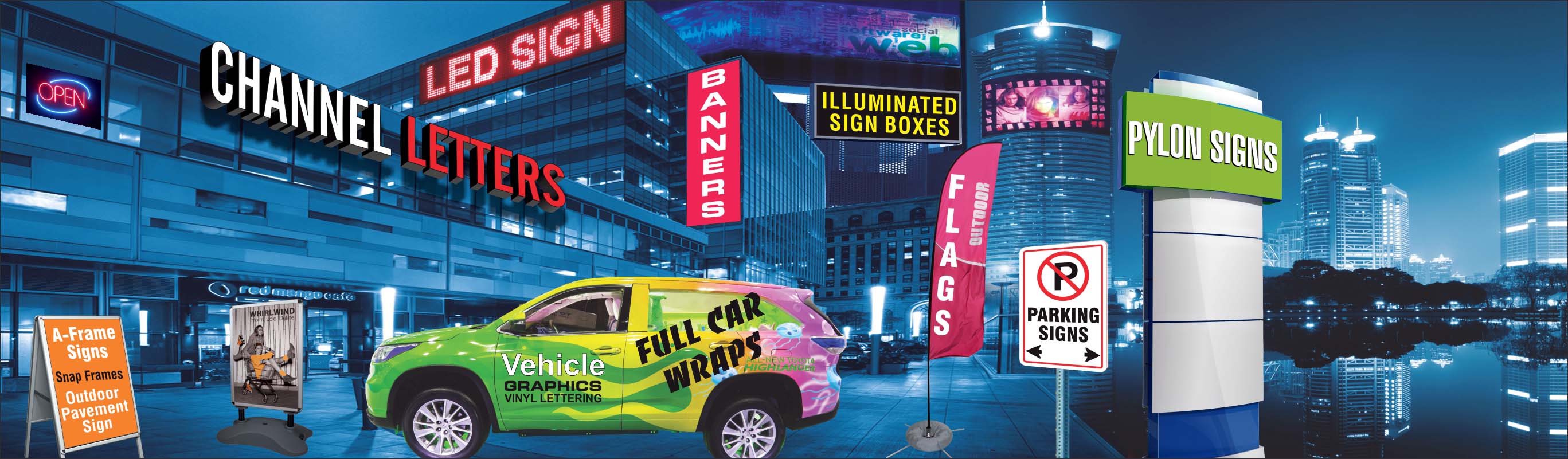 We make all type of signs whether – Outdoor Signs e.g. (Channel Letters, Non illuminated/ Illuminated Signs, 3D Cutout Letters/Logos, Pylon/Plaza Signs. Road Side Signs – Vinyl Banners, Flag Signs, Sandwich Boards, Lawn Signs). Indoor Signs e.g. (Receptions Signs, Door Signs, Wall Hanged Glass Signs, Wayfinding/Directory Signs), Window Graphics and Decals, Vehicle Wraps, Vehicle Lettering, Exhibition Signs, Parking Signs, LED digital Scrolling sings or moving signs for indoor & outdoor of any size.